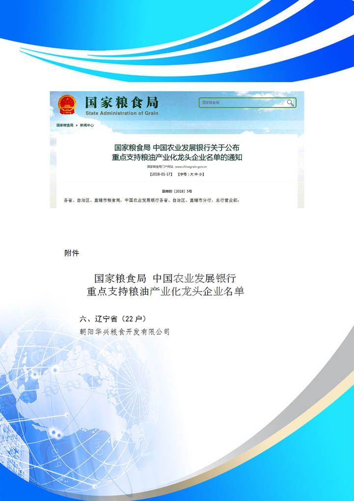 公司现为国家粮食局和中国农业发展银行重点支持粮油产业化龙头企业,辽宁省农业产业化重点龙头企业,省级科技产业化重点龙头企业、辽宁省扶贫龙头企业。